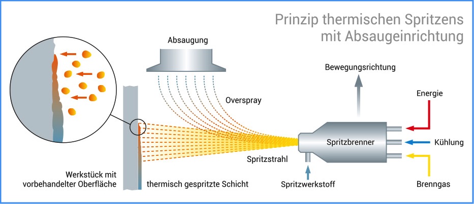 Beim Thermischen Spritzen ist, aus Gründen des Gesundheits- und Arbeitsschutzes, das Absaugen während des Arbeitsprozesses unerlässlich.